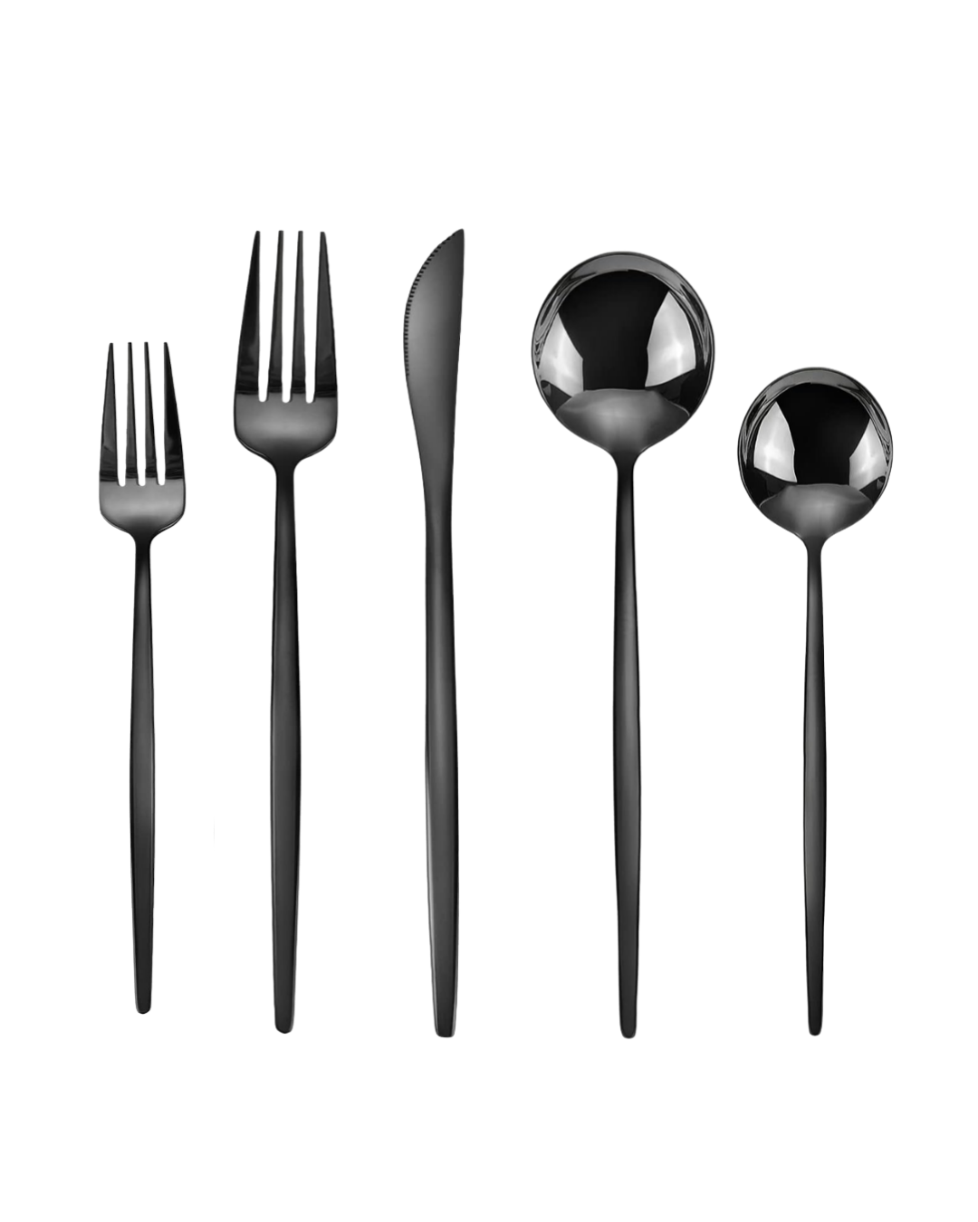 Modern Black Silverware – Set of 5 – Bold lines. Dark elegance.